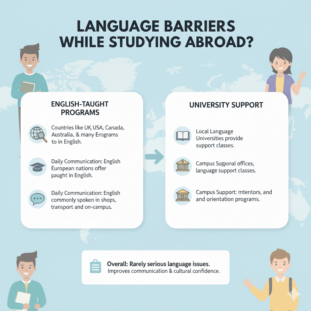 Overall, students rarely face serious language issues abroad, especially in international-friendly cities. Studying abroad also helps improve communication skills and cultural confidence over time.