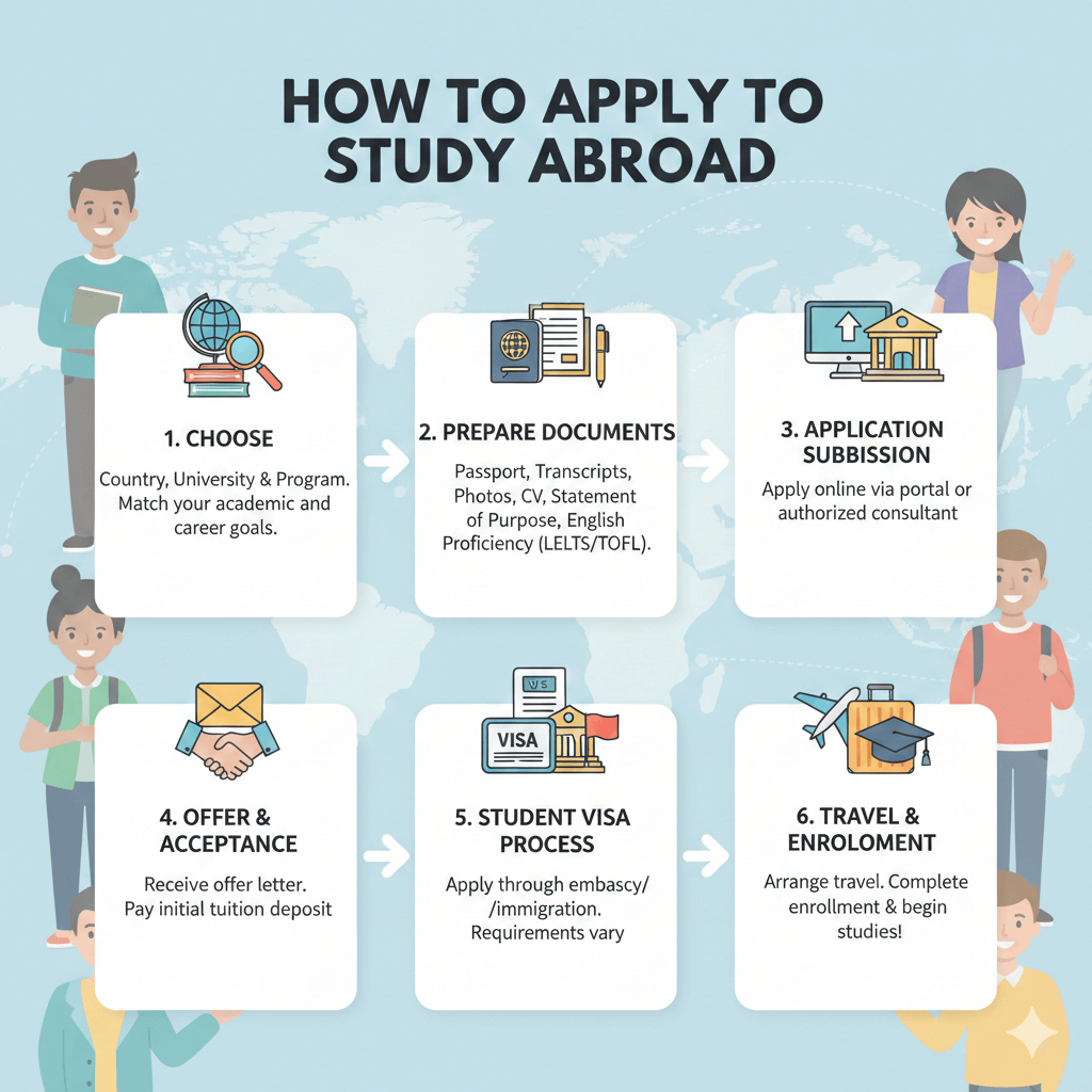 Once your visa is approved, arrange travel. Upon arrival, complete university enrollment and begin your studies abroad.